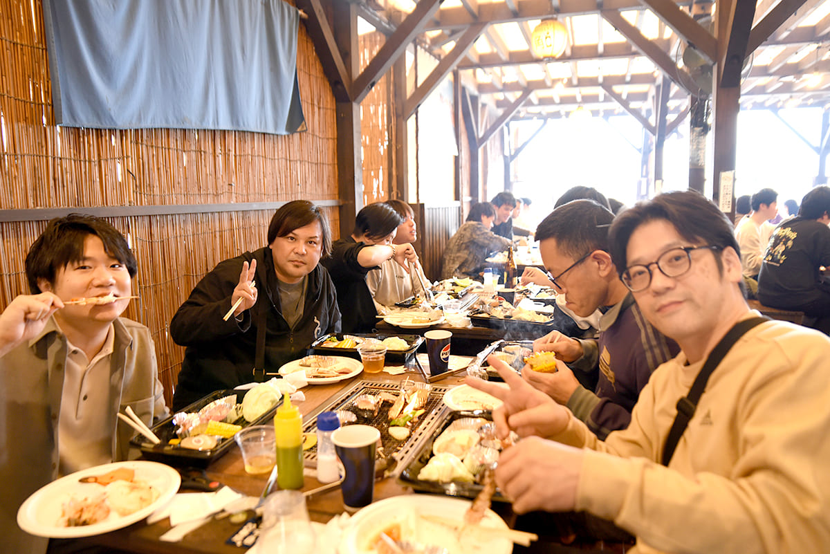 本社と香川からバスで出発し黒潮市場で合流し、昼食は浜焼きバーベキューを楽しみました。
