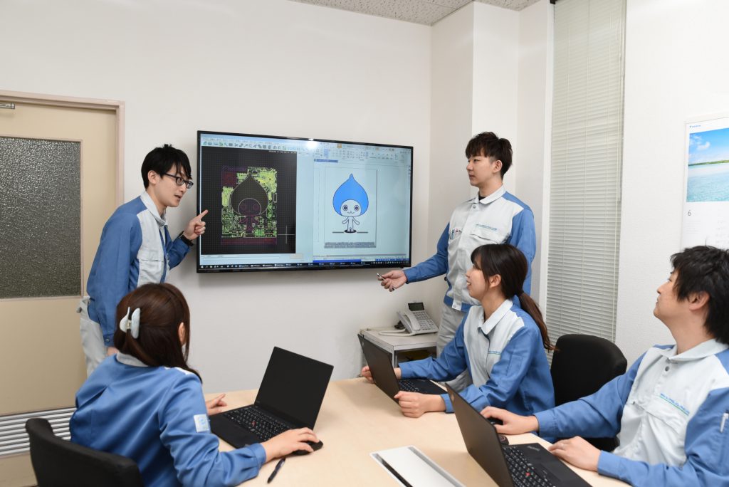 また、¨ぴちょんくん¨の周りにある部品やパターンは、実際に当社で開発・生産しているデザインを応用しております。