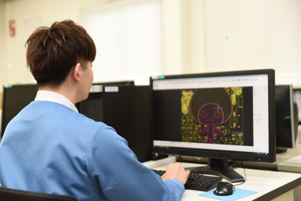 そこで、プリント基板の世界にダイキンのイメージキャラクターである¨ぴちょんくん¨を描くことを思いついたのです。
