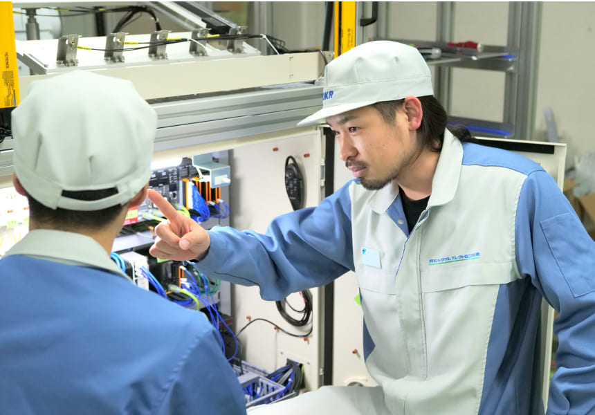 困りごとや確認事項がある場合にはメールや電話だけでなく、部門担当者のところへ伺い直接顔を合わせて内容を確認することも多く、人と人との距離が近いところは大企業にはない魅力だと思います。また、生産技術部内でも様々な業務があり、ハード・ソフト設計からニッチな分野(はんだ付け技術、チェッカー、検査機)まで幅広く知識、スキルを身につけることも可能で、やりたいことをどんどん任せてもらえる社風です。
